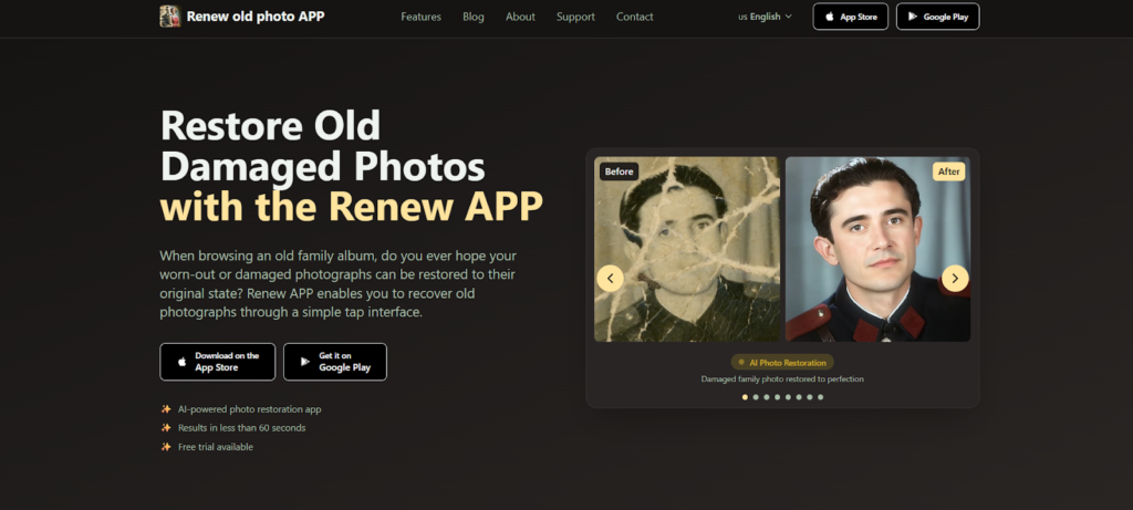 Renew Photo is an AI tool designed to restore damaged and faded photographs. You can download it on iOS and Android.